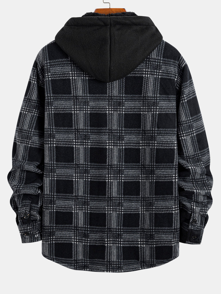 Teddy Lined Zip Up Flannel Plaid Hooded Shirt