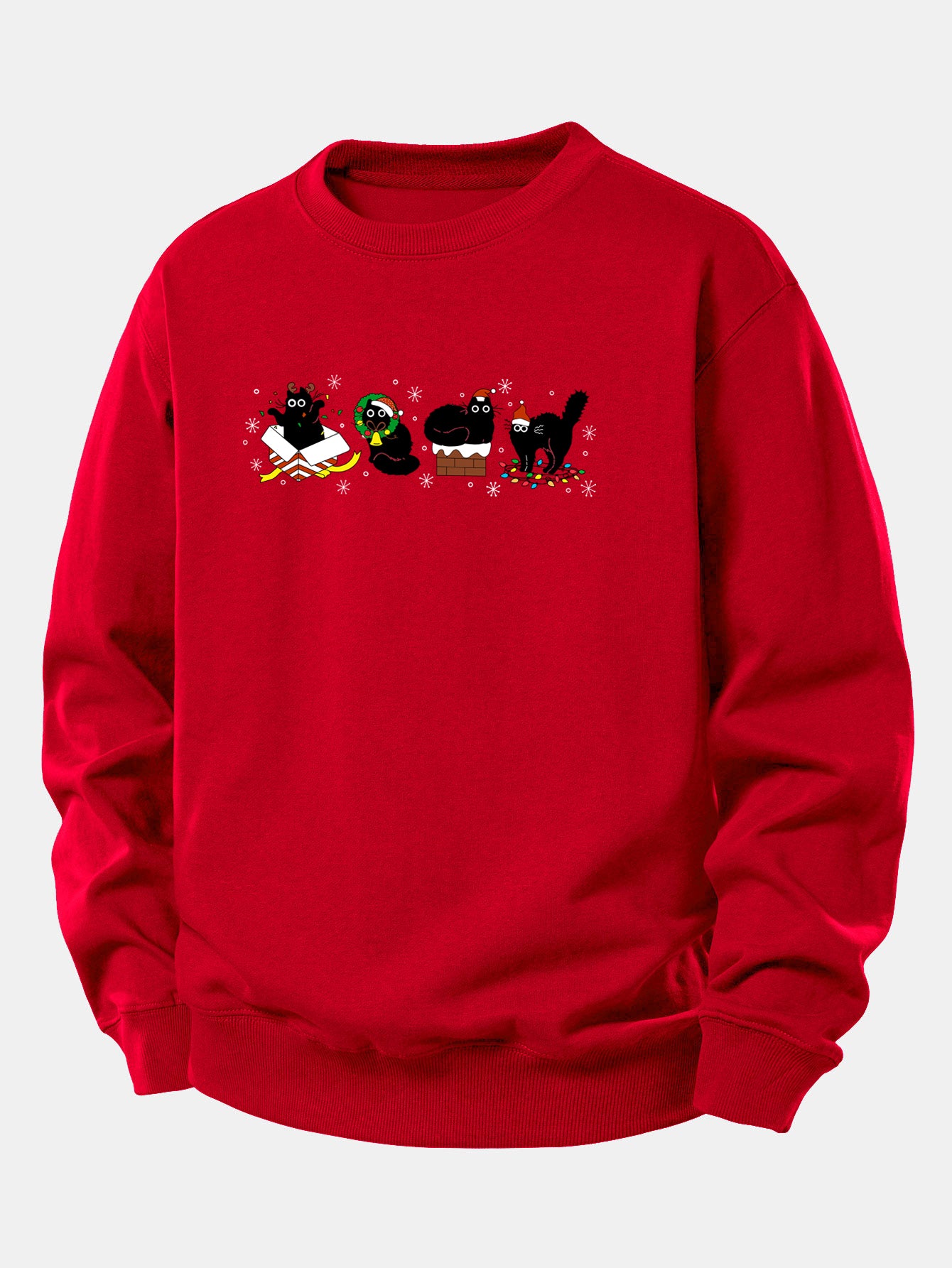 Featuring an adorable black cat dressed in holiday style, this sweatshirt blends cozy comfort with playful Christmas charm. The relaxed fit ensures effortless wear, making it perfect for staying warm and stylish throughout the holiday season.