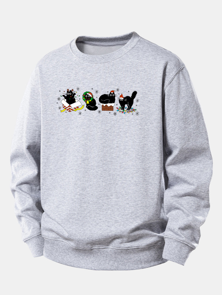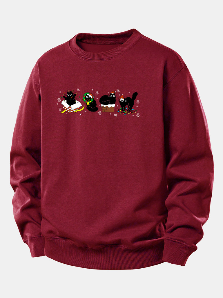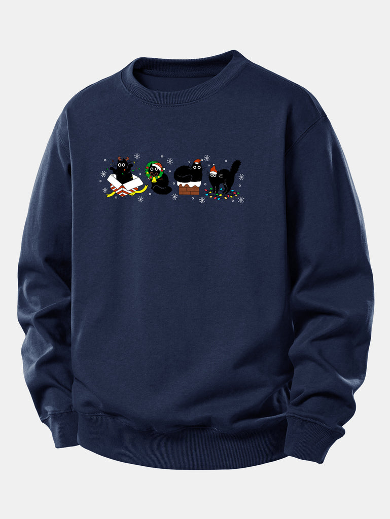 Christmas Black Cat Print Relax Fit Sweatshirt